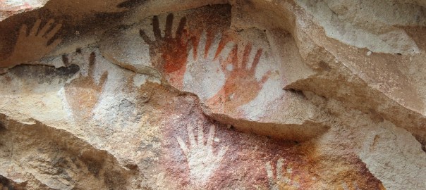 Then there were the negative hands. I hadn’t expected to be so taken by those ancient prints on the cave walls that had been there for thousands and thousands of years. There were so many hands in so many different sizes. There were large handprints stamped steadfastly at the entrance of the cave as if to say either ‘welcome’ or ‘stop.’ (The handprint was as unreadable as my unconscious.) Then there were somewhat smaller hands going along the side walls. Were they placed in celebration? In bondage? Did it matter?